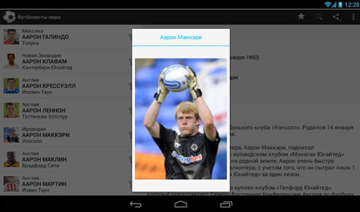 Энциклопедия игроков мировой сцены футбола в портативном формате. Программа вобрала в себя более 15 тысяч футболистов как закончивших карьеру (Пеле, Марадона...) так и будущих звёзд мирового футбола, с подробной биографией, фотографиями, клубной принадлежности... У некоторых игроков указаны игровые прозвища. В сборнике можно узнать подробности о жизни игроков чемпионата мира по футболу в Бразилии 2014 года и других ЧМ.