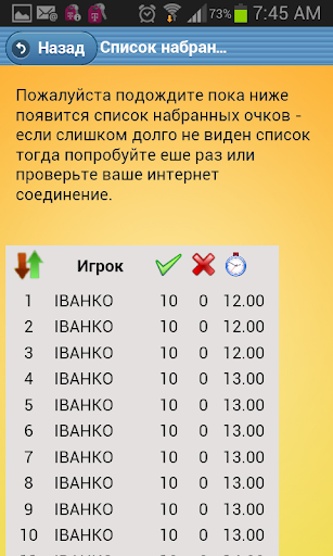 Приложение работает и в автономном режиме кроме того времени когда хотите загрузить набранные очки. Убедитесь, что вы обновляете все время, чтобы получить новые вопросы.