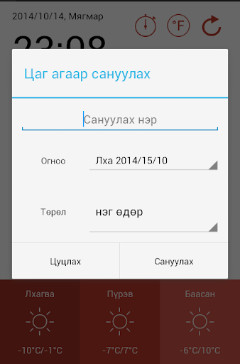 Тэр өдрийн цаг агаарыг сануулж сэрүүлэг маягаар гаргах боломжтой.