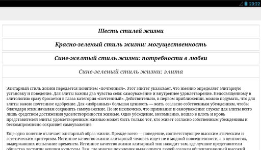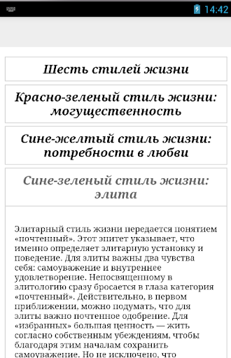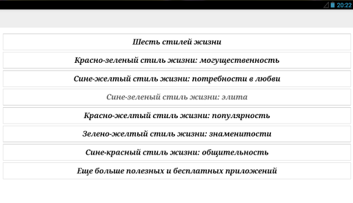 Через восприятие этих точно определенных цветовых оттенков можно проникнуть в сущность душевного состояния всех шести стилей жизни.