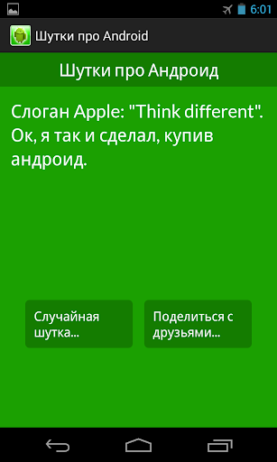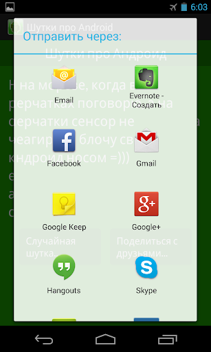 Шутки и анекдоты выбираются случайно, есть возможность поделиться с друзьями.
