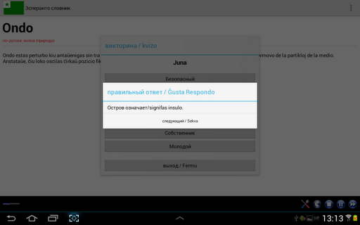 * Двуязычный Тест: исследование и проверить свой словарный запас русско-эсперанто и эсперанто-русский.