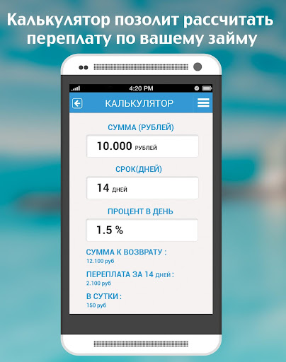 Наше приложение покажет список самых популярных предложений займов и кредитов, которые помогут решить ваш финансовый вопрос всего за несколько минут. Вы сможете выбрать подходящую вам организацию и условия получения займа или кредита с помощью удобной системы подбора в пару нажатий. Оформить онлайн заявку на займ очень просто - для этого достаточно перейти на сайт заимодовца.