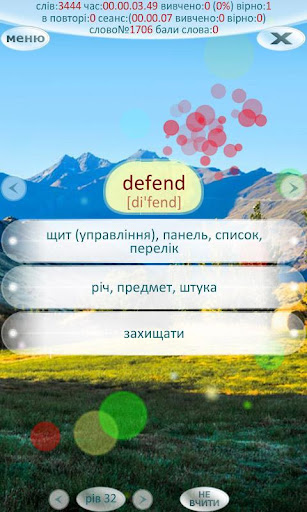 За кожну правильну відповідь ви заробляєте бал до відповідного слова, набравши 7 балів (по замовчуванню) слово вилучається із списка і вважається вивченим. Не відпускаючи одразу клавішу, можна помітити як міняється статистика по конкретному слову. При відпусканні клавіші переходимо до наступного слова.
