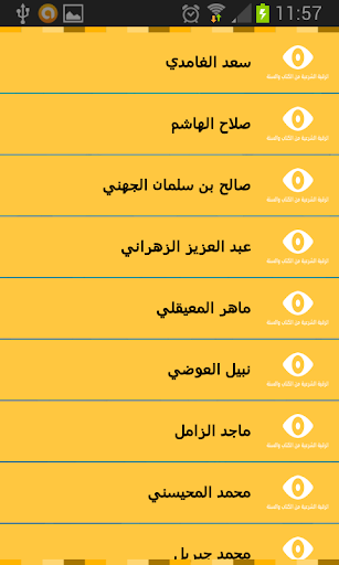 سعد الغامدي، صلاح الهاشم، صالح بن سلمان الجهني، عبد العزيز الزهراني، ماهر المعيقلي، نبيل العوضي، ماجد الزامل، محمد المحيسني، محمد جبريل، ياسر الدوسري، عبد الباسط عبد الصمد، أحمد العجمي، إدريس أبكر، خالد القحطاني، مشاري بن راشد العفاسي، ناصر القطامي، توفيق الصائغ، أحمد صابر، ياسر سلامة، محمد اللحيدان، هاني الرفاعي، أحمد البليهد، عبد المحسن العبيكان.