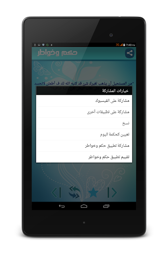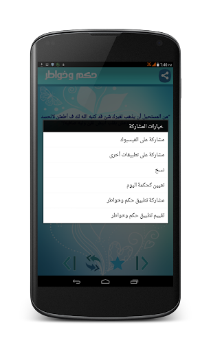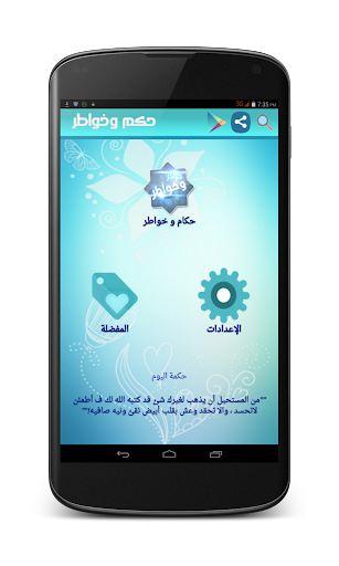 * يمكن مشاركة الحكم و الخواطى على أى تطبيق اخر مثل فيسبوك , تويتر , واتس اب , فايبر, وتطبيقات أخرى
