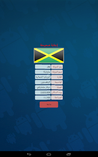 تطبيق باللغة العربية لزيادة الثقافة العامة في دول العالم .. من خلال التطبيق تستطيع إختبار ثقافك العامة في دول العالم حيث أن التطبيق يعرض عليك علم الدولة وأنت عليك اختيار اسم الدولة من مجموعة خيارات تظهر لك ويقوم التطبيق باحتساب الإجابات الصحيحة والخاطئة وعرضها في النتيجة النهائية .. كما يقوم التطبيق بعرض معلومات أساسية عن الدولة عند اختيارك للإجابة الصحيحة.
