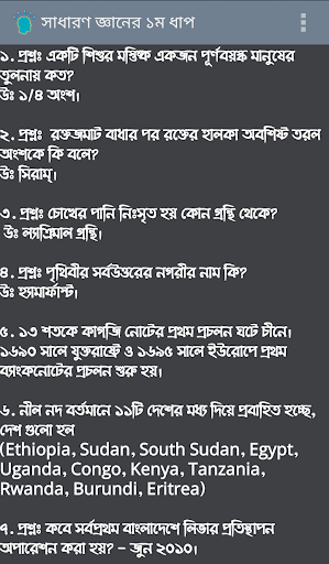 এতে সাধারন জ্ঞানের ১ম ধাপ থেকে শুরু করে ১০ম ধাপ পর্যন্ত কিছু ক্যাটাগরিতে তথ্য ভাগ করা রয়েছে ।