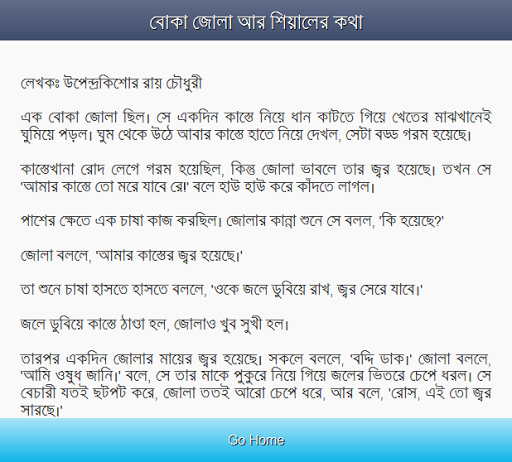 প্রযুক্তির এই যুগে ছোটদের ও বড়দের জন্য মজার মজার বাছাই করা গল্পের সমাহার নিয়ে গল্পের বই এর মতই সাজিয়েছি আমাদের এই মোবাইল এ্যাপ্লিকেশনটি। ছোটদের হাতে দিতে পারেন এই এ্যাপ্লিকেশনটি।