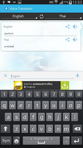 Voice Translator - แปลภาษาได้ทั้งพิมพ์ข้อความหรือใช้เสียงระหว่างกันได้ถึง 80 ภาษา