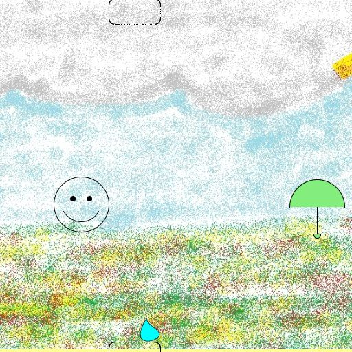 In diesem Spiel muss man mit Hilfe der Maus einen Regenschirm fangen. Zum Erwischen muss man mit der linken Maustaste auf diesen klicken. Wenn man ihn erwischt hat, bekommt man 10 Punkte. Doch man muss den Wassertropfen ausweichen. Aber wenn ein Tropfen den Smiley, die Figur die man steuert, erwischt werden 10 Punkte abgezogen. Das Spiel ist zu Ende, wenn die Punkteanzahl unter 0 ist oder wenn die Zeit von 60 Sekunden abgelaufen ist.