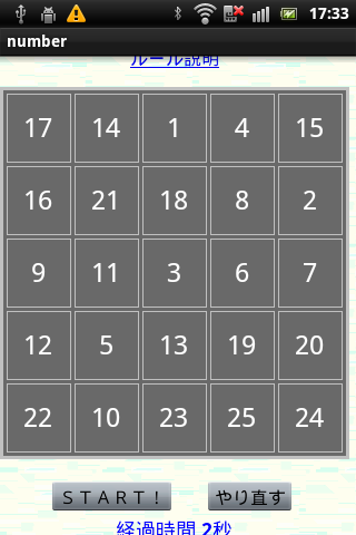 ・マスに書かれた数字(マスではなく数字)を、1から順にクリックで消していきます。
