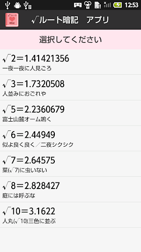 「 暗 記 」エリア・・・√(ルート)の暗記方法が表示されます。