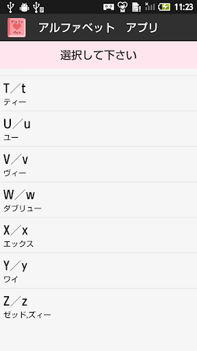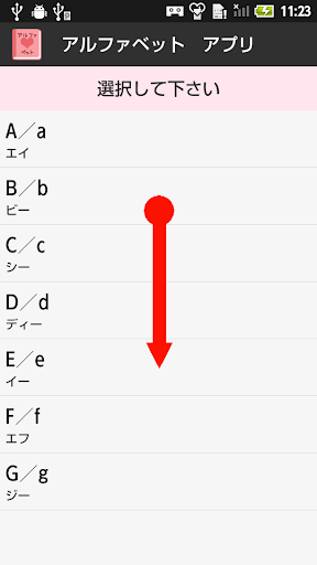 「A/a」~「Z/z」までのアルファベットを勉強できるアプリです。
