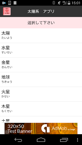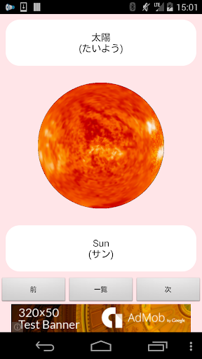 太陽系の名前を勉強できるアプリです。
