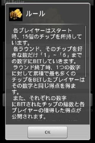 ラウンド終了時、1つの数字に対して累積で最も多くのチップをBETしたプレイヤーはその数字と同じ得点を得ます。