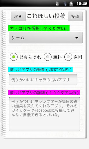 本アプリは、「こんなアプリほしいな〜」とか「こんなアプリあったらいいな〜」という思いを投稿するアプリです。