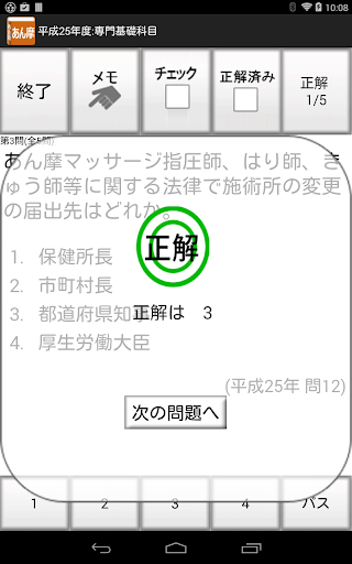 あん摩マッサージ指圧師試験の第19回(平成22年度)から第22回(平成25年度)までの過去問を収録したアプリです。
