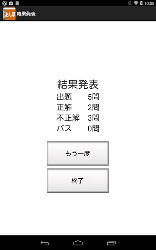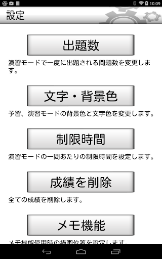 ランダムで問題が出題されます。出題される問題数、制限時間も設定可能。