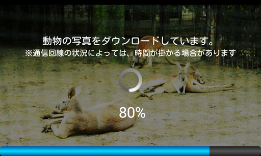 こちらのアプリでは初回起動時に動物写真のダウンロードが開始されます。