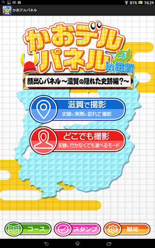 観光地に訪れると、たまに見かける「顔出し看板」。それを主に滋賀県ゆかりの人物イラストで合成撮影して楽しめるアプリです。
