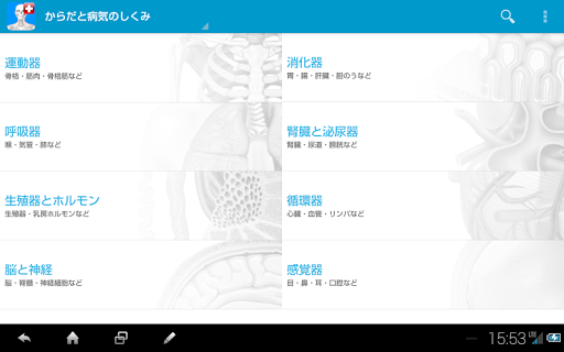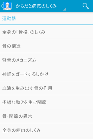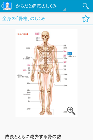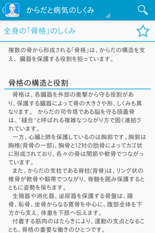 250点を超える詳細カラーイラストで、からだの各部位の働きと病気のしくみを分かりやすく図解化したアプリです。