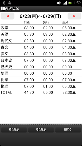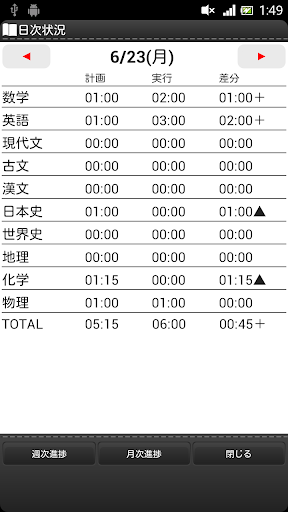 ・カレンダーに学習時間を記録して学習計画との差分を確認できます。