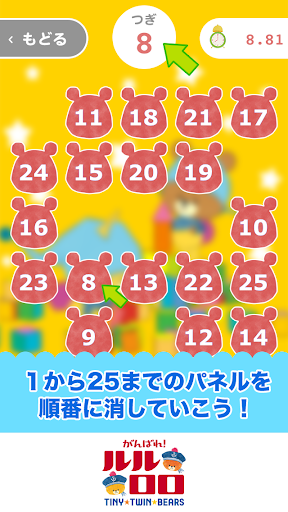 ぴっ、けーれー! 今日のおしごとは1から25までのパネルをすばやくタッチすること!