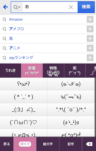 ★顔文字もたくさんあって入力も簡単!特殊顔文字も泣くほど充実!(இдஇ;)