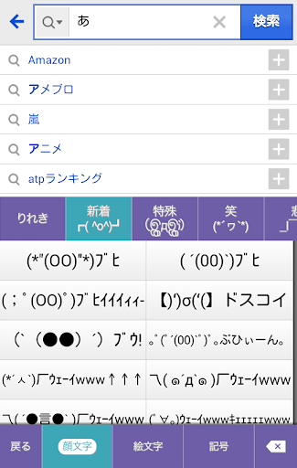 「新着」「特殊」「笑」などの顔文字カテゴリから好きな顔文字を選ぶだけ!