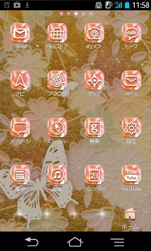 ダウンロード&インストール後、お手持ちの携帯のアプリ一覧から「きせかえ壁紙☆Butterfly」を選ぶだけで設定OK☆