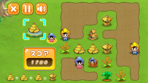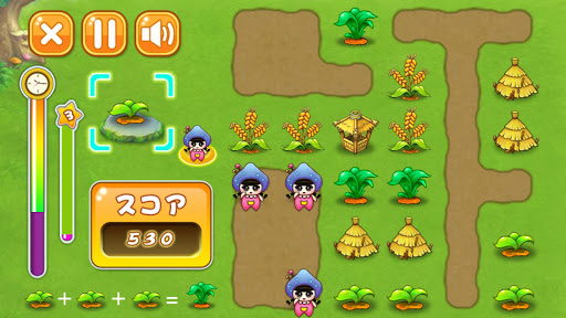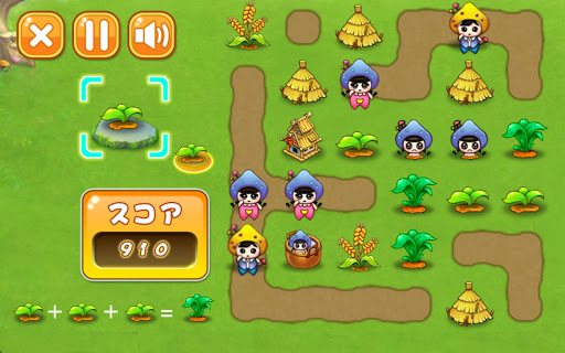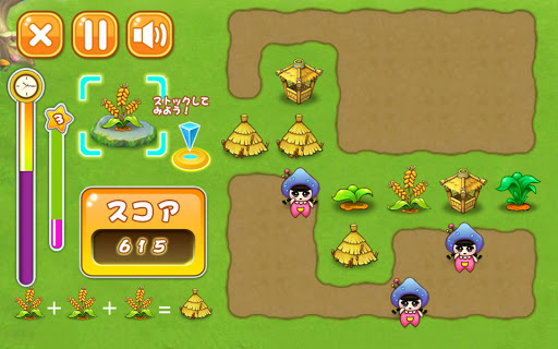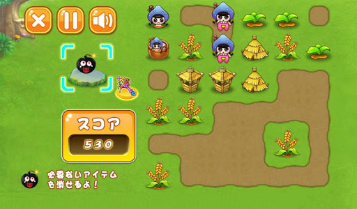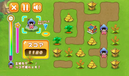 荒れた土地(画面)に草や稲といったアイテムを並べるだけで得点アップ。