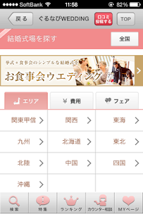 結納・顔合わせから、結婚式・披露宴、お食事会ウエディング、二次会・パーティ会場まで結婚関連の情報が一度に見れるのは【ぐるなびウエディングだけ!! 】探したいエリアや会場タイプ、注目キーワードなどから検索。会場の詳細データやイメージが写真でしっかり確認できます。さらに、近辺の結納・結婚式・二次会の会場までGoogleマップ上に表示されるので、式場・会場探しがラクラク。目的地まで経路を表示し最短距離をガイドします。お気に入り会場登録やMYページ機能を使えば、資料請求・ブライダルフェア予約などがサクッと完了。MYページから予約請求履歴の閲覧もできるので、いっぱいチェックしても情報管理はおまかせです。