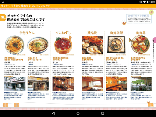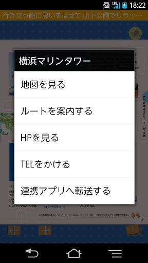 誌面から関連する誌面への情報を表示します。地図の表示はもとより電話の発信や純正マップアプリを利用したルートの参照、スポットによってはHPの表示や宿の予約までできます。