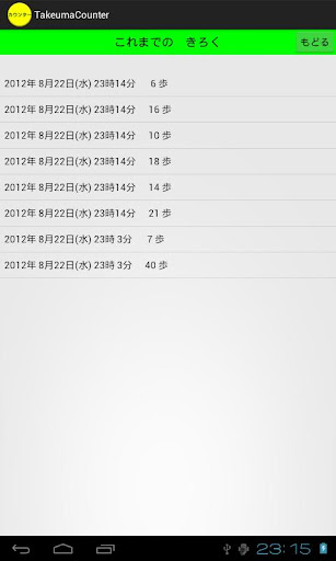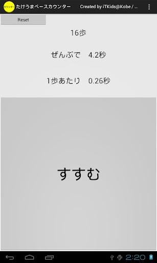 ステップに合わせてタップすると、歩数、トータル時間、1歩あたりの時間が出ます。