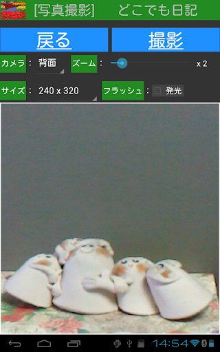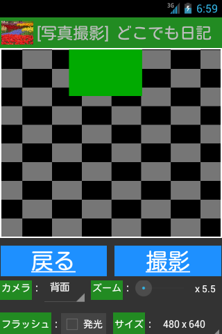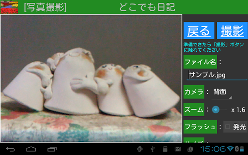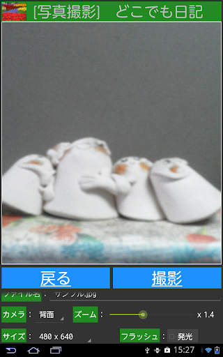 (3)カメラはズームやフラッシュが使え、保存サイズを指定できます。