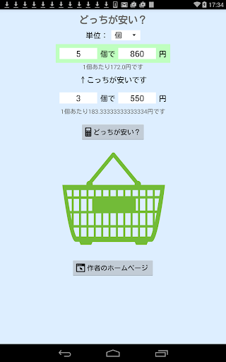 買い物で「150gで198円の肉と、250gで298の肉、どっちがお得なんだろう?」と思ったときに便利なツールです。