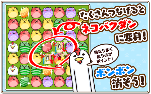 5個以上つなげるとネコバクダンに変身!タップすると周りのネコちゃんを巻き込んで消えて高得点!
