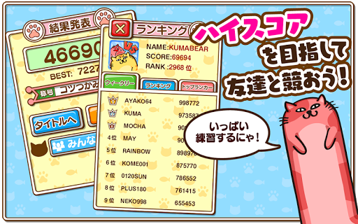 1分以内にネコちゃんをたくさん消して、高得点を狙っちゃおう♪