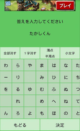 濁点文字(がぎぐげござじずぜぞ等)または半濁点文字(ぱぴぷぺぽ)の入力は、まず濁点(半濁点)をつけたい文字を入力してから“濁点 半濁点”を押すと濁点(半濁点)文字に変わります。