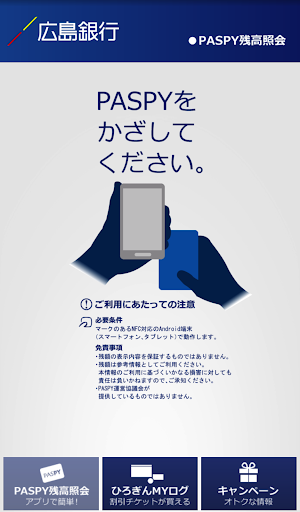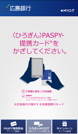 ただし、「〈ひろぎん〉MYログ」「PASPY残高照会」をご利用になる場合はNFC対応機種に限ります。
