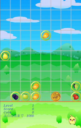 ポイントが一定の数値までたまると、ひよこ的なのから姿が変わるかも…?消したフルーツの種類も関係あるかもなぁ。