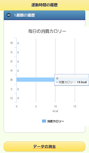・運動時間に応じて、消費したカロリーが曜日ごとに確認できる。