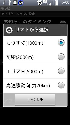 「もう駅」はネットワーク位置情報を利用していますので、測っているのは、あくまで「だいたいの」距離です。(通常3Gの位置誤差は1~2kmあります)