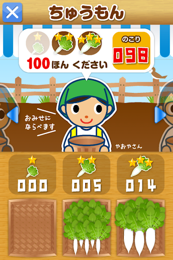 八百屋さんや板前さんから、野菜の注文が届いているよ。