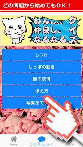 犬(わん)ちゃんと仲良くなるための知識が身につくクイズアプリです。