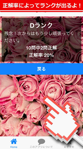クイズは、各カテゴリごとに正解率によってランクが表示されます。