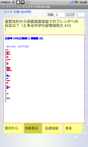 クイズの成績をファイルに保存でき、各設問の正解状況を表示することもできます!