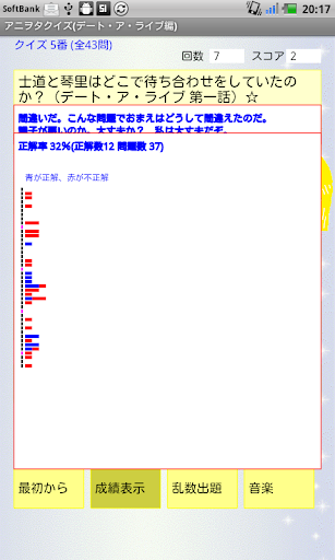 クイズの成績をファイルに保存でき、各設問の正解状況を表示することもできます!
