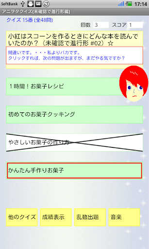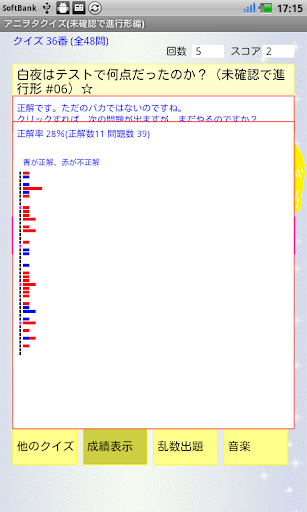 クイズの成績をファイルに保存でき、各設問の正解状況を表示することもできます!